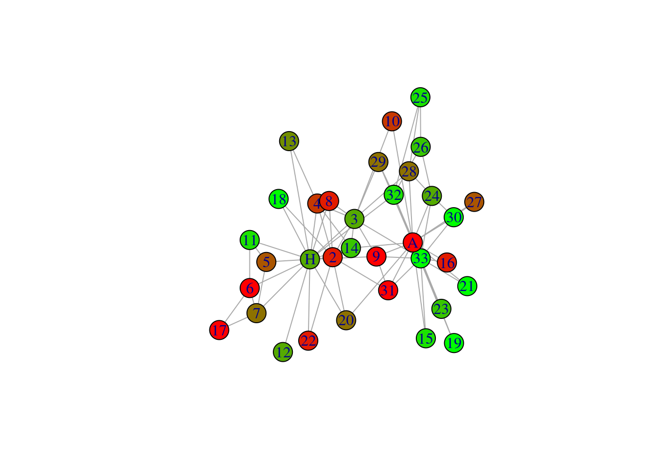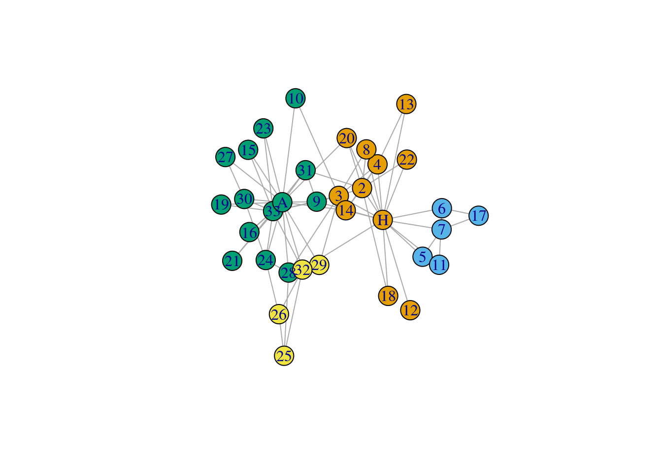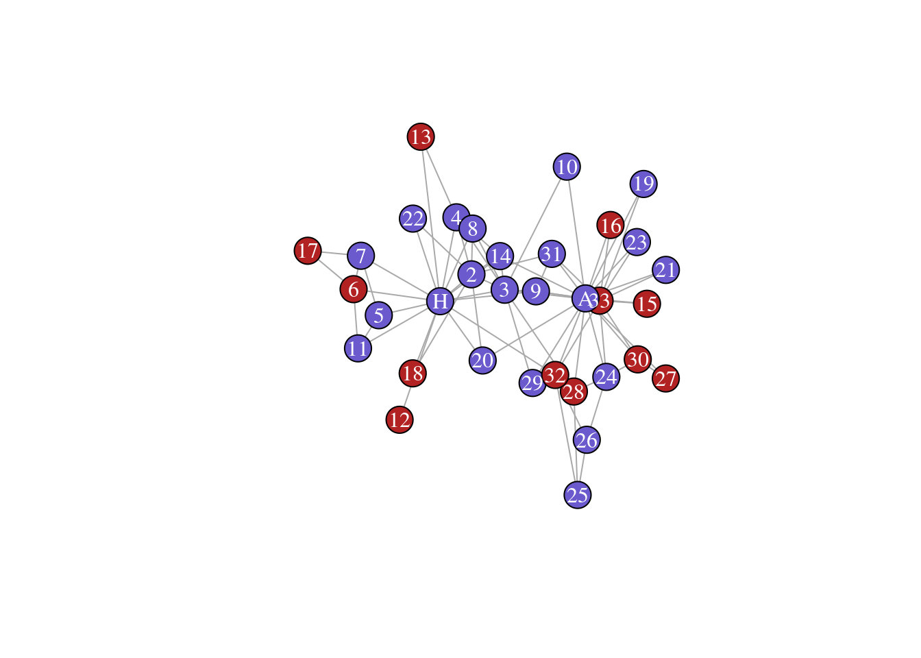 node_info <- node_info %>% arrange(factor(node, levels = V(karate)$name))## This graph was created by an old(er) igraph version.